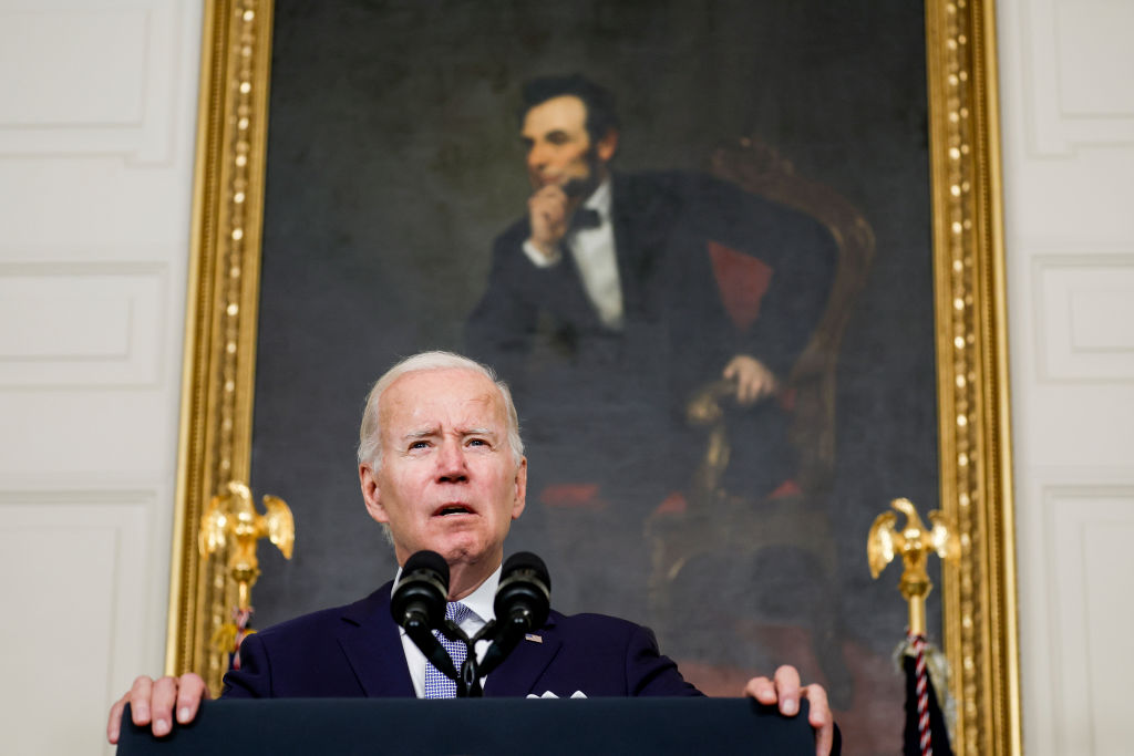 조 바이든 대통령이 역사적인 인프라 기후법에 사인하면서 연설을 하고 있다 (출처: Gettyimages)