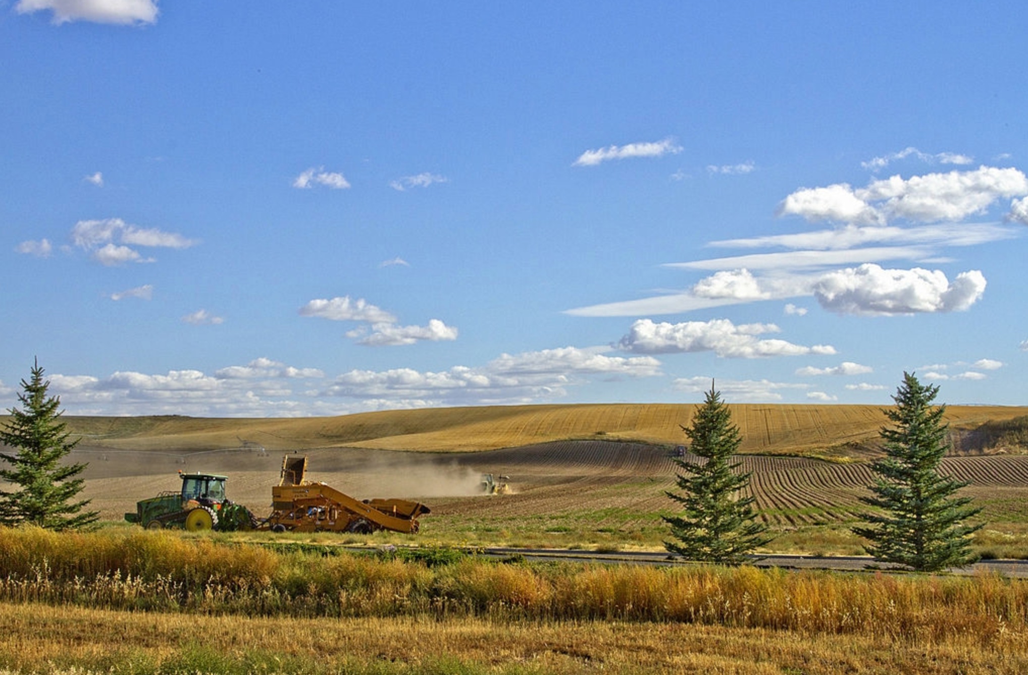 아이다호에서 추수를 하고 있는 존 디어 트랙터 (출처: Linda Jamison)
