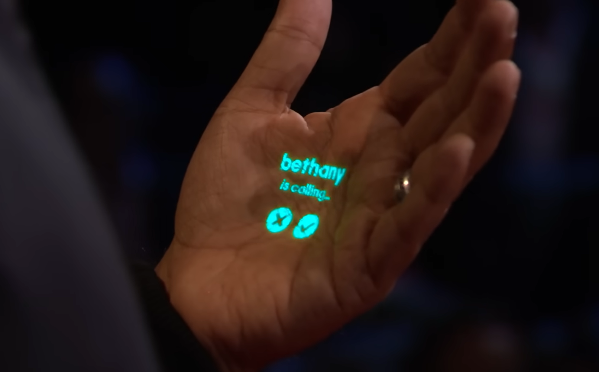 AI핀은 스마트폰 화면을 눈에 보이는 모든 곳으로 확장한다. (출처 : TED Talk)